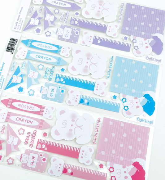 [borahstudio] Study with Honey Deco Sticker (Bujo, 3 colors)