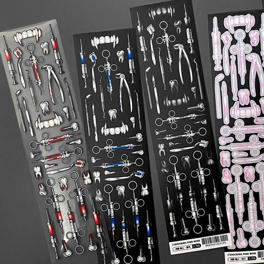 [Shocking Pink Rose] Dental Tools Deco Sticker (5 colors)