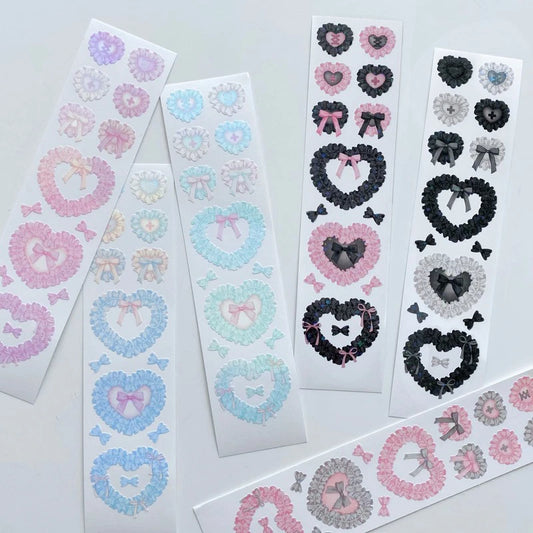 [Shocking Pink Rose] Frill Heart Deco Sticker Sheet (6 colors)