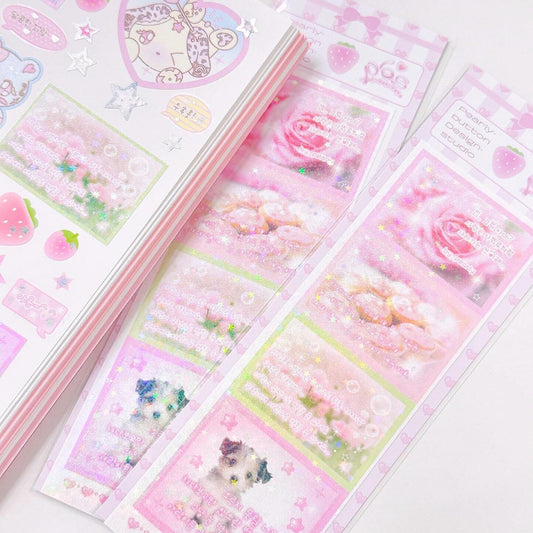 [Pearly Button] Aurora Pink Star Deco Sticker Sheet