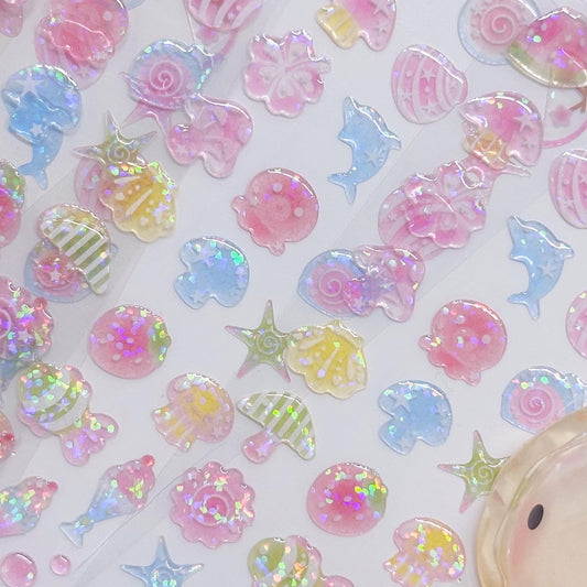 [Pearly Button] Aqua Jelly Epoxy Deco Sticker Sheet