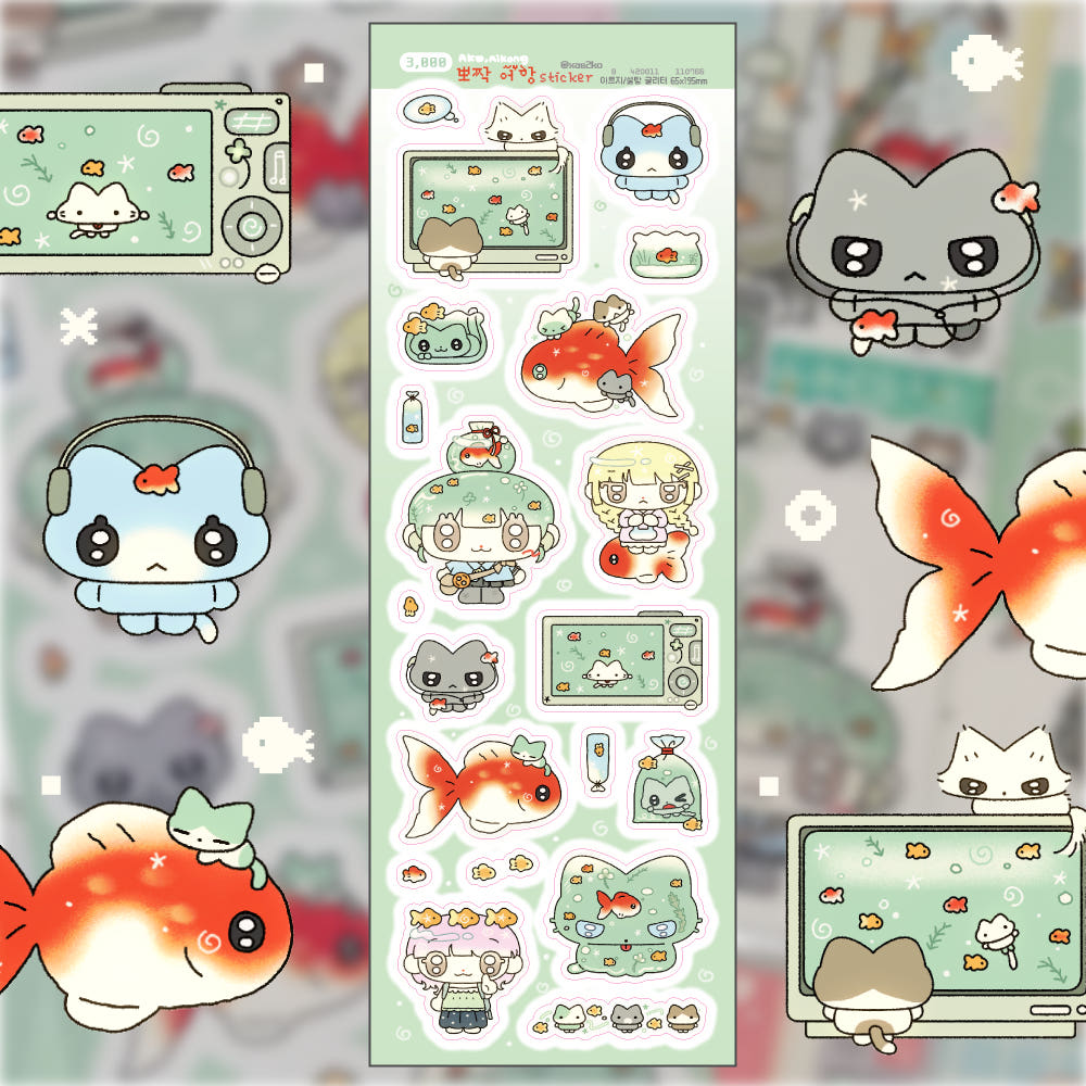 Get creative with Ako, Aikong's Tiny Splash Aquarium Sticker Sheet. Use it for journaling, decorating toploaders, planners, and diaries. Adorned with the cutest and most colorful character illustrations, this sticker sheet will add a touch of whimsy and fun to all your projects. Perfect for inspiring creativity and adding a pop of cuteness to your everyday life!