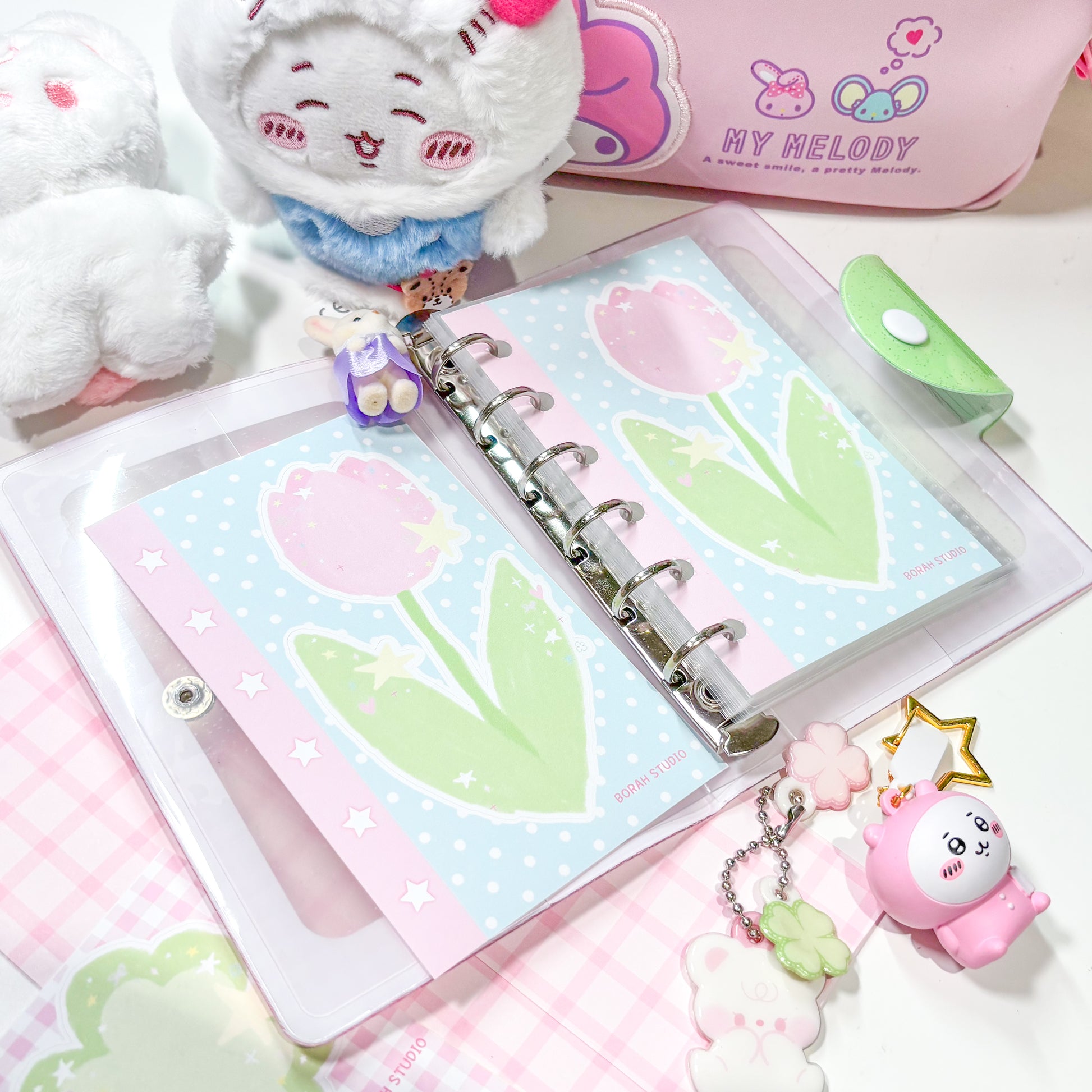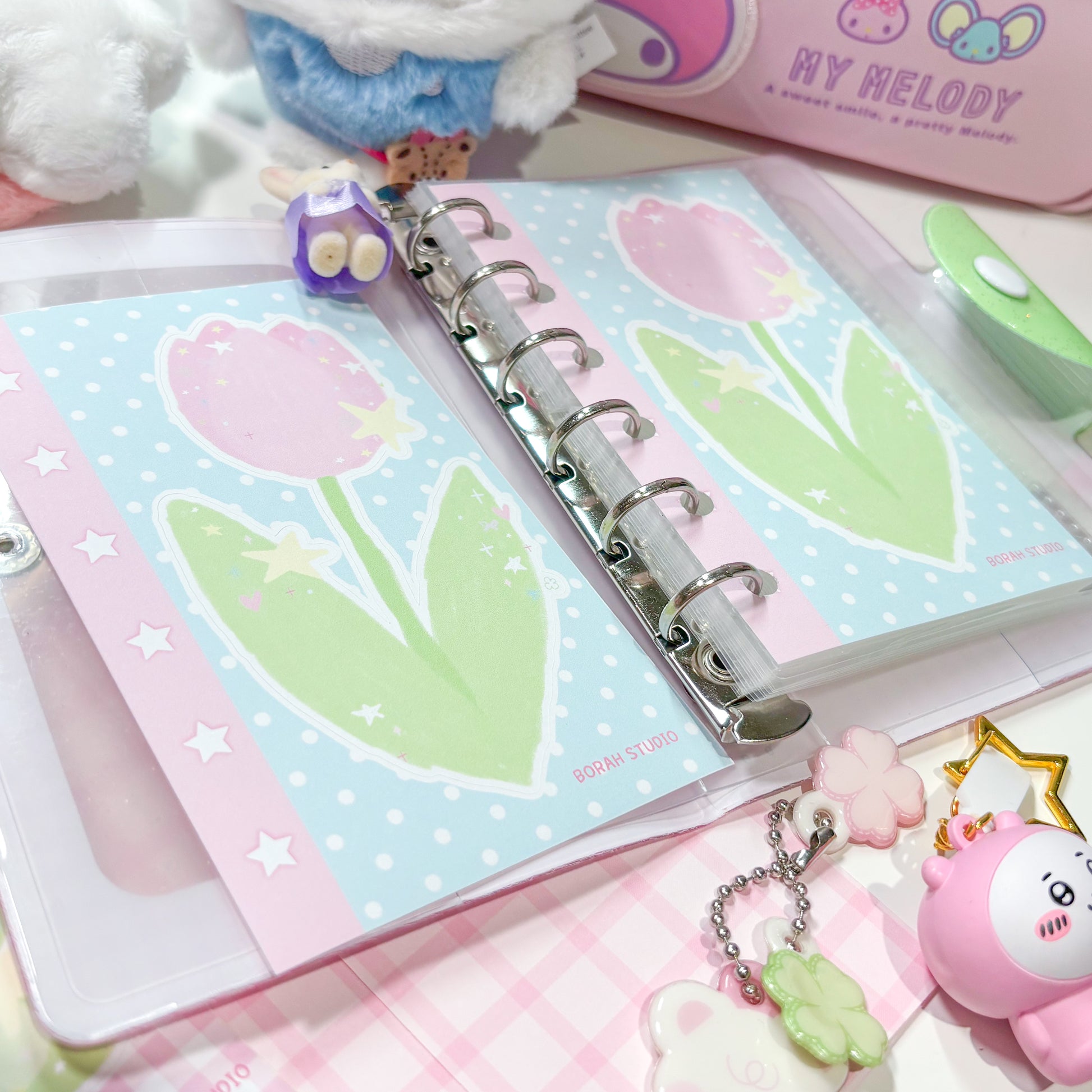 Transform you journal spreads, daily diary entrees and more with the help of Borah Studio's A7 Tulip Memo Sticker Sheet! Featuring the prettiest character stickers, these are perfect for customizing and adding small accents to your notebooks and diary spreads! Get creative and enjoy the extra charm Borah Studio's A7 Memo Sticker Sheets brings to your collection!