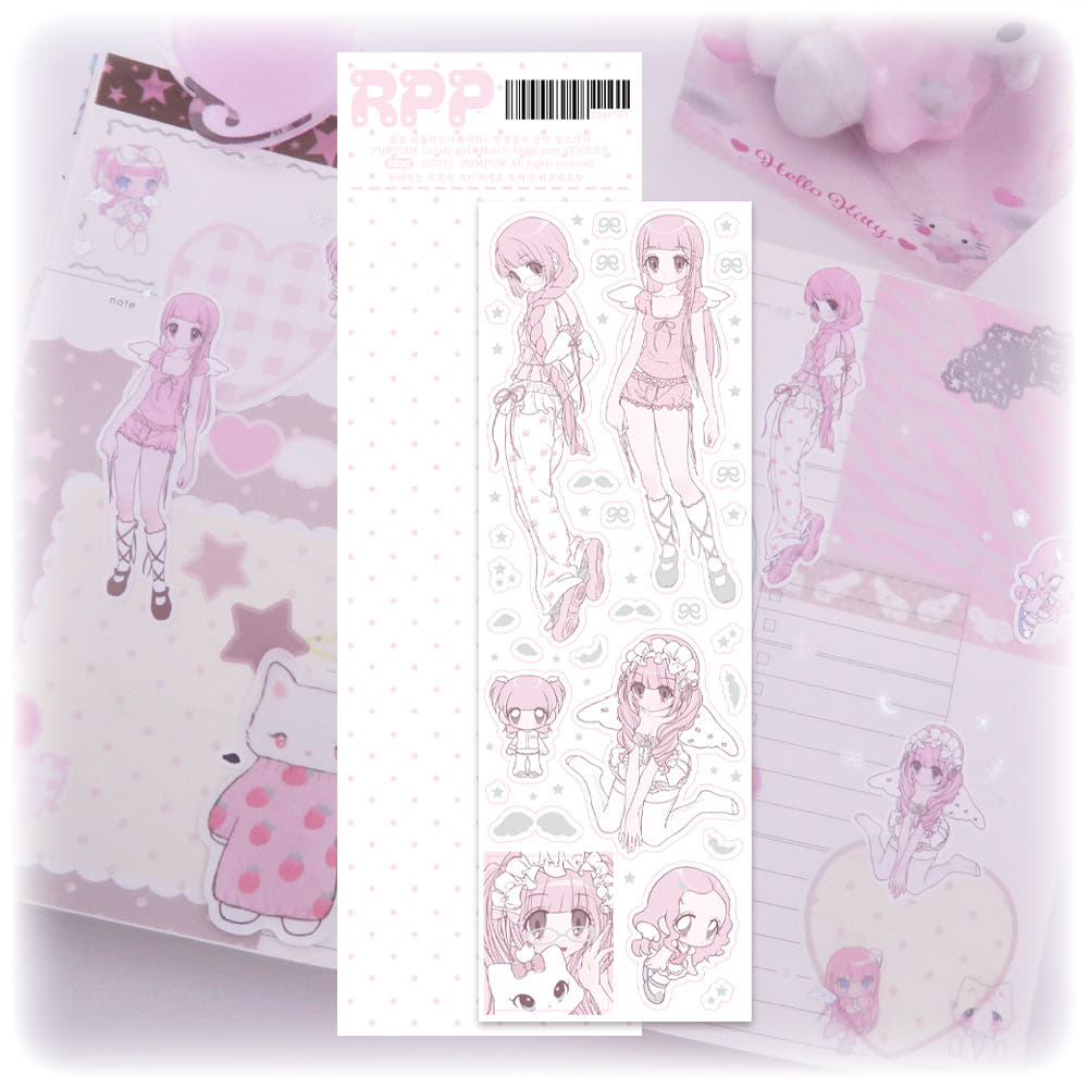 Elevate your creativity with the [Rumpumpum] Loner Girl + Meta!! Angelcore Sticker Sheet! This beautifully illustrated deco sticker is perfect for toploader deco, journaling, and more. Express your love for all things cute and add a touch of cute charm to your projects. Get ready to spread joy and inspiration with the Lonely Girl Deco Sticker!