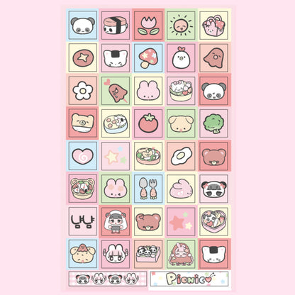 Elevate your creative projects with these irresistibly cute Seolkee's Picnic Sticker Sheet! Featuring adorable characters and charming illustrations, these stickers are perfect for personalizing journals, enhancing polaroid photos, decorating planners, or adding a touch of whimsy to any surface. Don't miss the chance to make everything you touch instantly cuter!