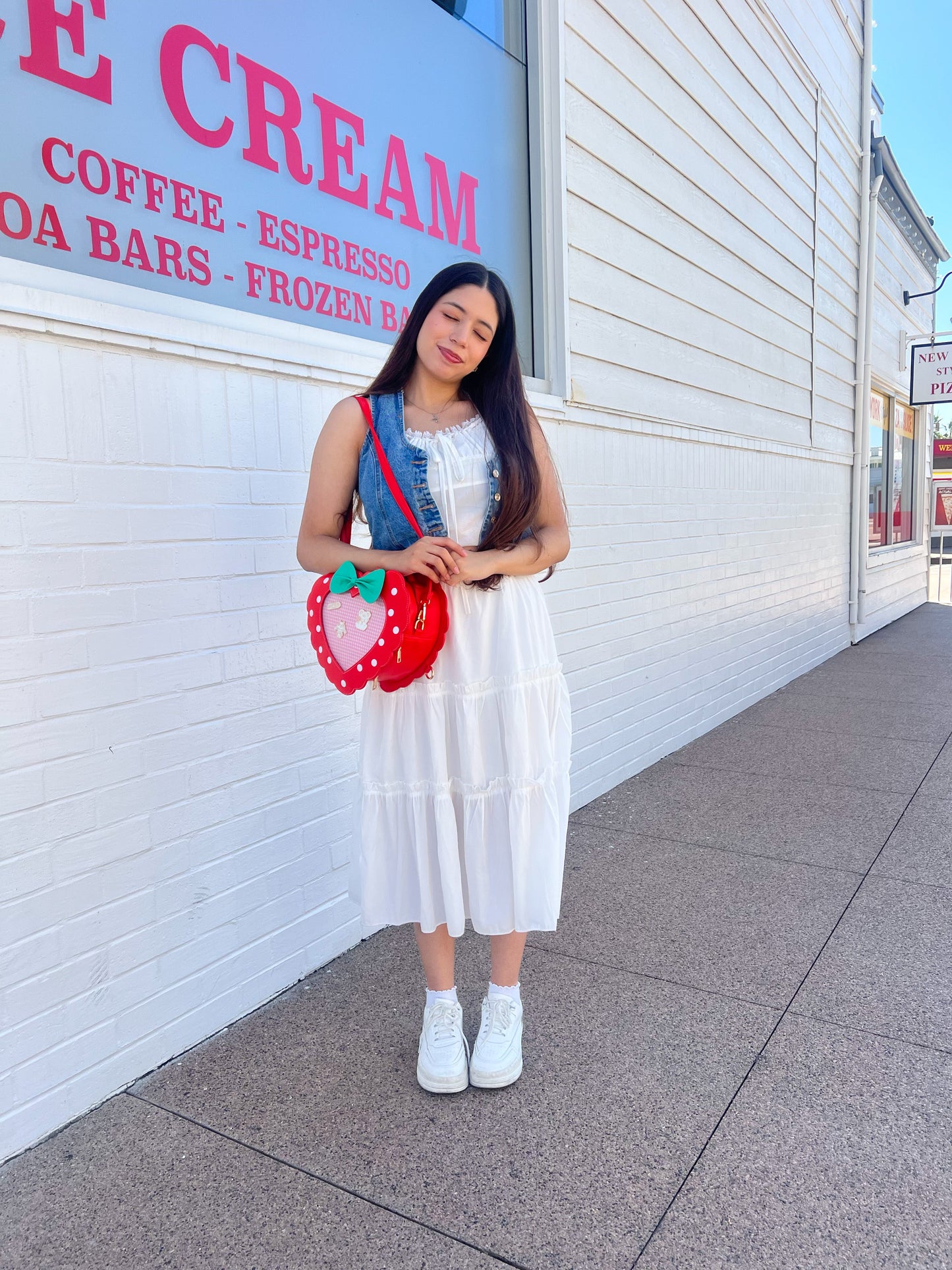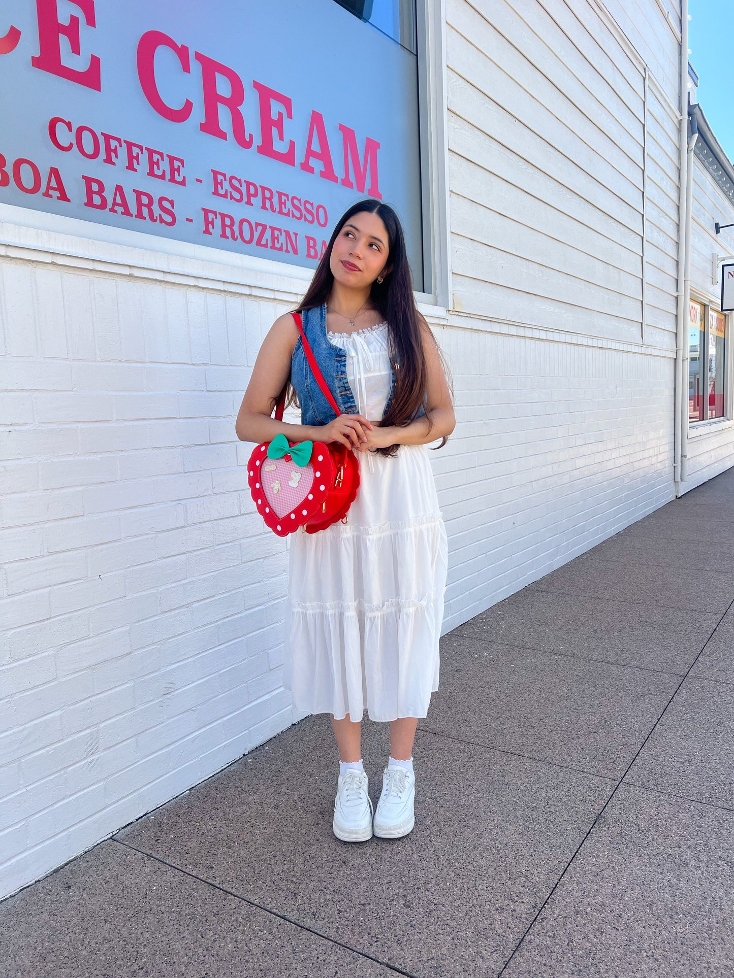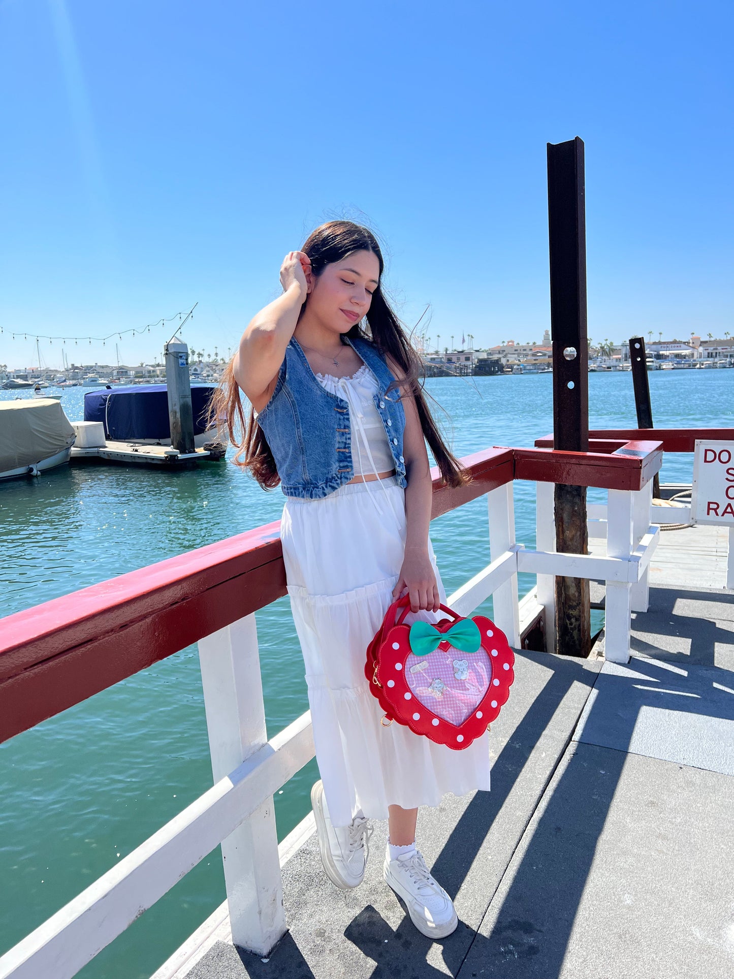 Feel cute and stylish with the Strawberry Heart Ita Bag! The perfect daily bag for your bright everyday look, it's designed to store your pins, makeup, school supplies, and more! Showcase your personality and style with this adorable bag!