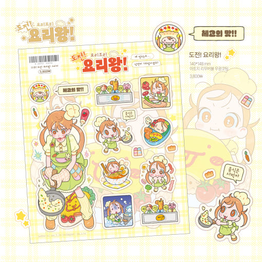 Unleash your creativity with our [Sw_o.ov] Challenge! King of Cooking! Sticker Sheet! Featuring adorable art and beautiful illustrations, this sticker sheet is perfect for journaling and adding a unique touch to your everyday items. Let your creativity shine and make your life more colorful with this adorable sticker sheet!