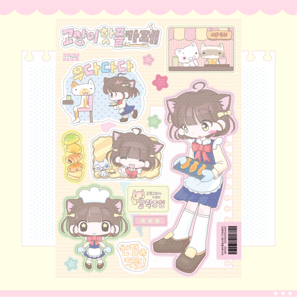 [Yaong Peace] Cat Hot Place Cafe Coco Sticker Sheet